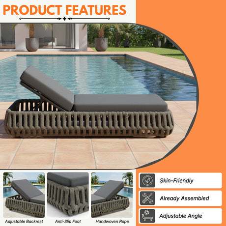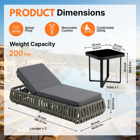 Outdoor Rope Lounge Chairs Set of 2 With Side T...