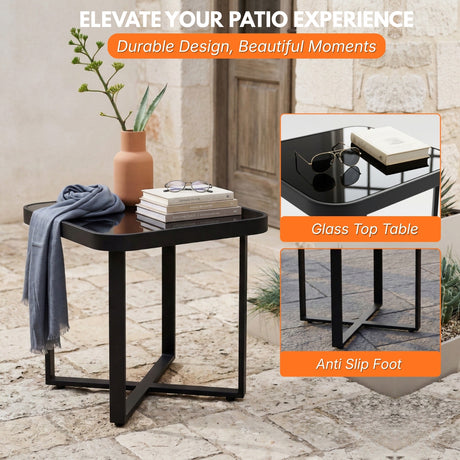 The cushions are really comfortable, and the overall design looks elegant in my patio. I love that it comes with a center and side table, very convenient for keeping drinks or snacks. It feels sturdy and high quality, and it has quickly become my go to spot for relaxing outdoors.