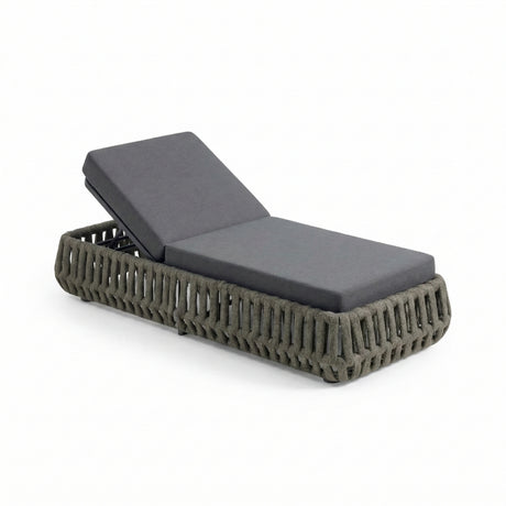 Outdoor Grey Rope Patio Daybed With Off-White C...