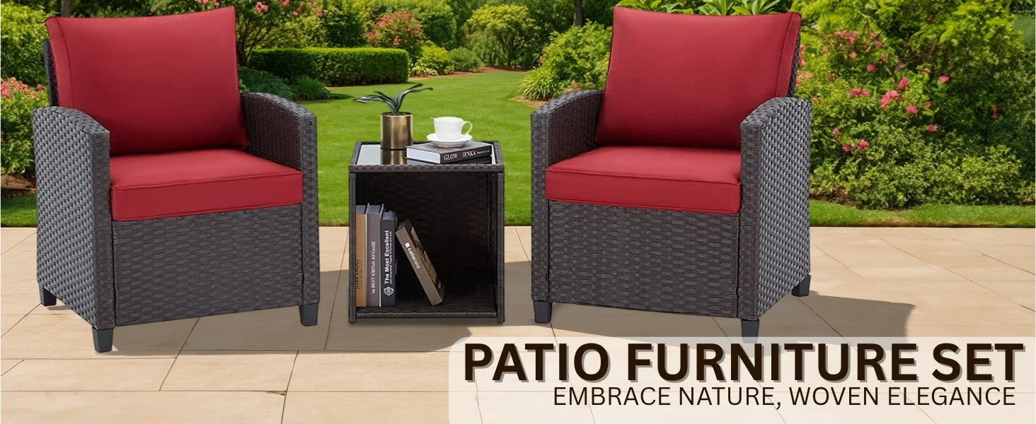 Upgrade your balcony, patio, garden, or terrace with this elegant 3-Piece Outdoor Rattan Conversation Set a perfect blend of modern design, lasting comfort, and smart functionality. Crafted for those who value both aesthetics and practicality, this set features two ergonomically designed wicker chairs paired with a chic square table that doubles as a discreet storage unit. Whether you're enjoying a morning coffee, unwinding after work, or hosting a cozy evening chat, this set offers a stylish and comfortable spot to relax and connect. Built with durable handwoven rattan and a sturdy powder-coated metal frame, this all-weather furniture resists sun, rain, and fading making it ideal for year-round outdoor use. The generously padded cushions come with removable, washable covers that ensure lasting cleanliness and freshness, while the high backrests and wide armrests offer supportive seating that feels as good as it looks. The centerpiece—a square table with a hidden storage compartment—adds an extra layer of convenience. Store cushions, books, or outdoor essentials out of sight yet within reach, keeping your space tidy and organized.