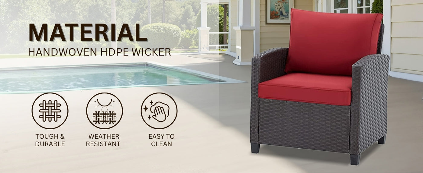 • Durable All-Weather Rattan Wicker : Handwoven HDPE rattan offers long-lasting performance with UV, water, and fade resistance perfect for year-round outdoor use.