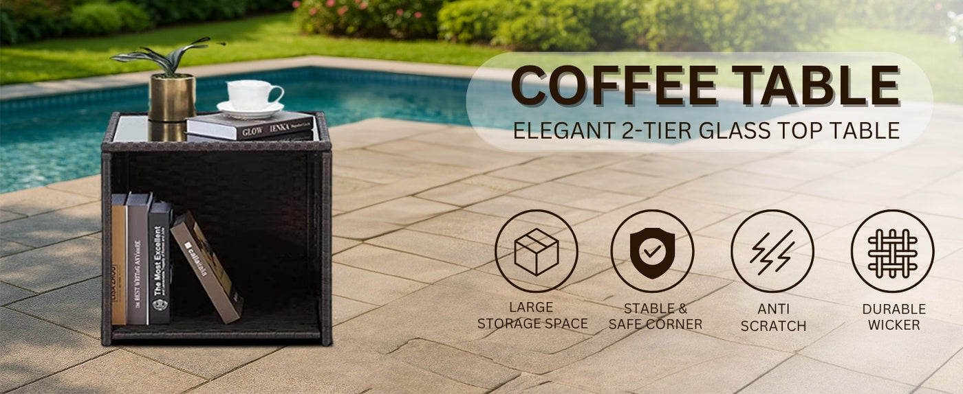 • Multifunctional Square Storage Table : Includes a spacious tabletop and hidden internal storage ideal for keeping patio essentials like cushions, throws, or accessories organized.
