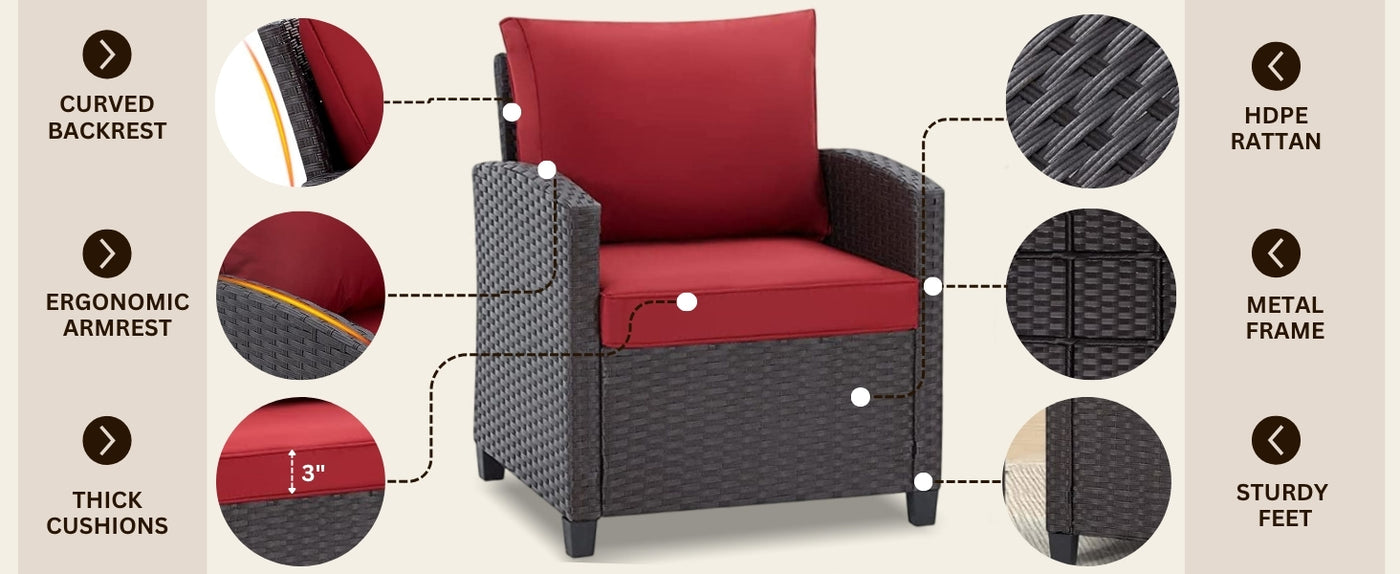 • Comfortable Cushioned Seating : Plush, high-density foam cushions with removable, washable covers deliver soft support and easy maintenance for outdoor relaxation.