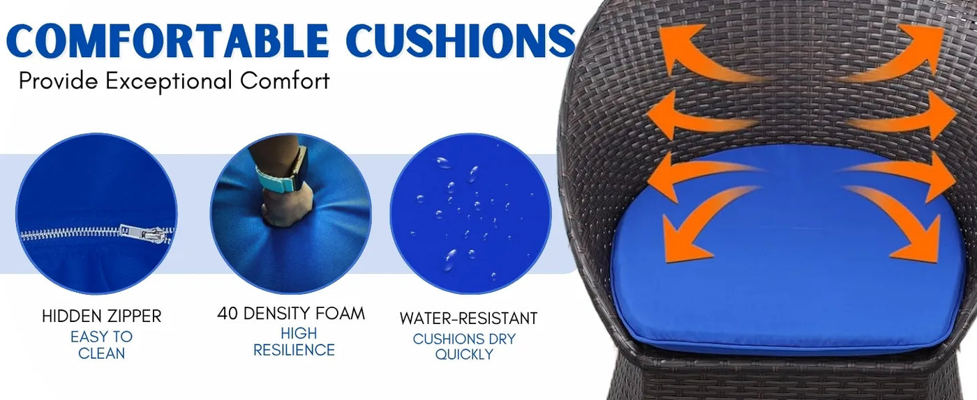 • Comfortable Cushioned Seating : Soft, high-density foam cushions with removable, water-resistant covers offer superior comfort and easy maintenance for long hours of relaxation.