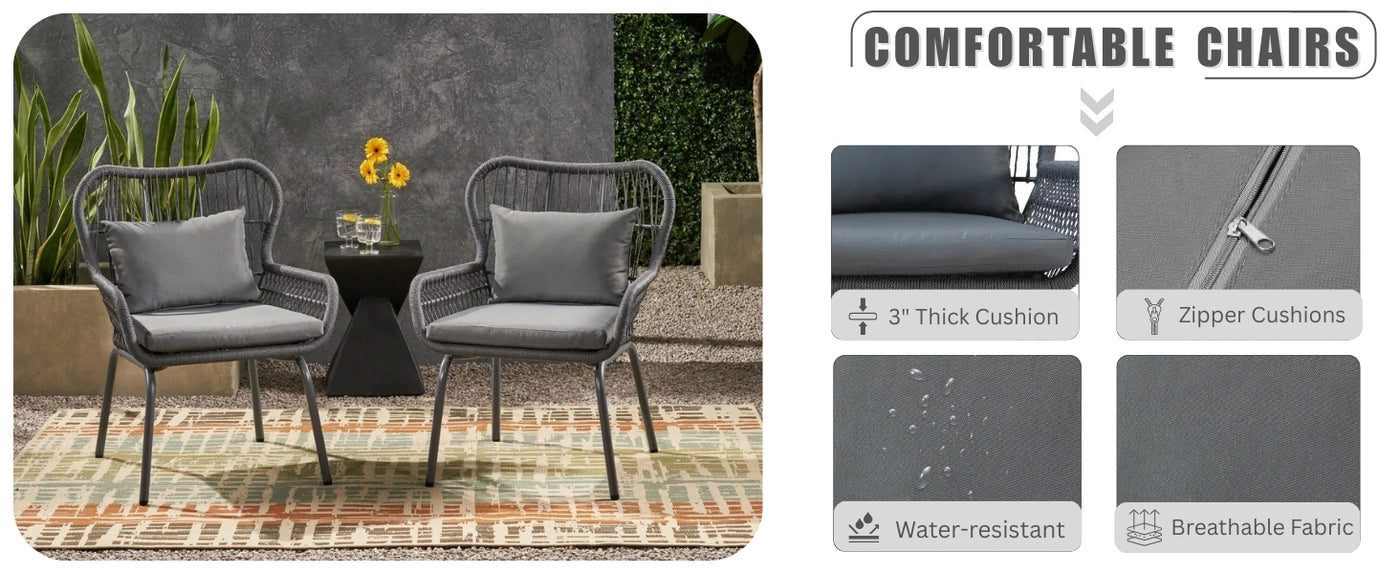 - Elegant Grey Aesthetic : Neutral-toned rope and cushions add a touch of modern sophistication that complements a wide range of outdoor décors.