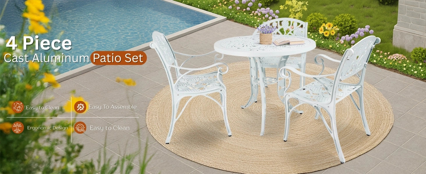Outdoor 4-Piece Cast Aluminum Patio Bistro Set