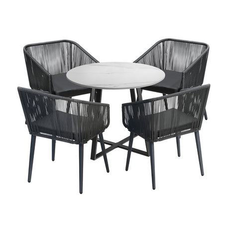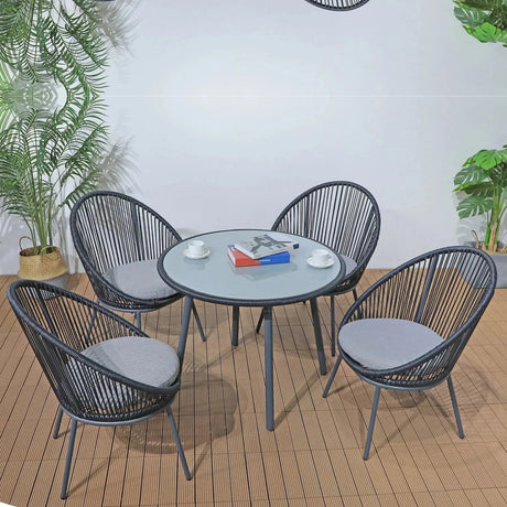 5-Piece Outdoor Patio Dining Set with Rope Chairs