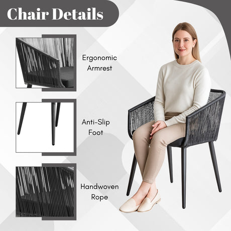 5-Piece Outdoor Patio Dining Set with Rope Chai...