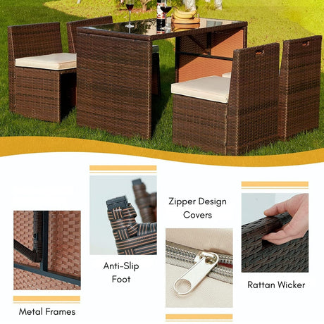 5-Piece Outdoor Patio Dining Set with Square Ta...
