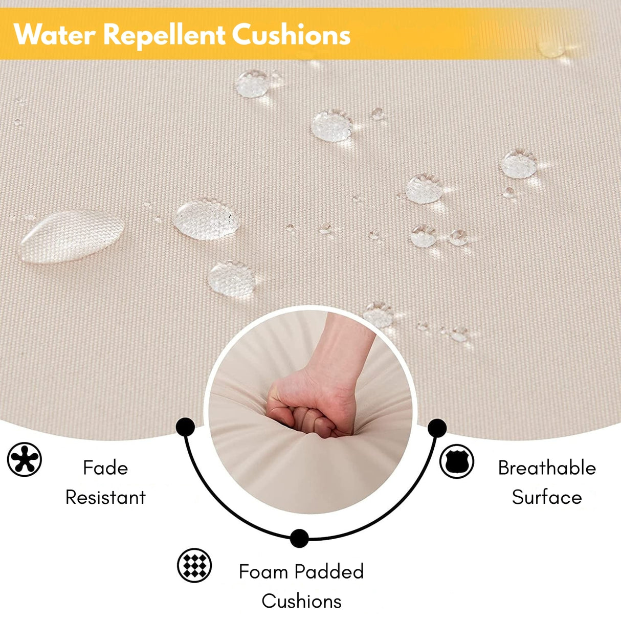 - Comfortable Weather-Resistant Cushions : Includes thick, plush cushions with removable, washable covers. The cushions are made from weather-resistant fabric, offering lasting comfort and resilience against sun, moisture, and fading.