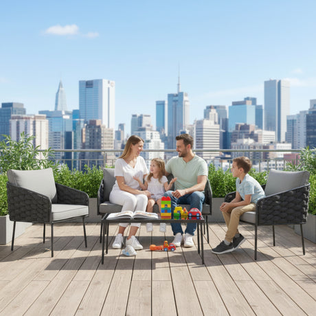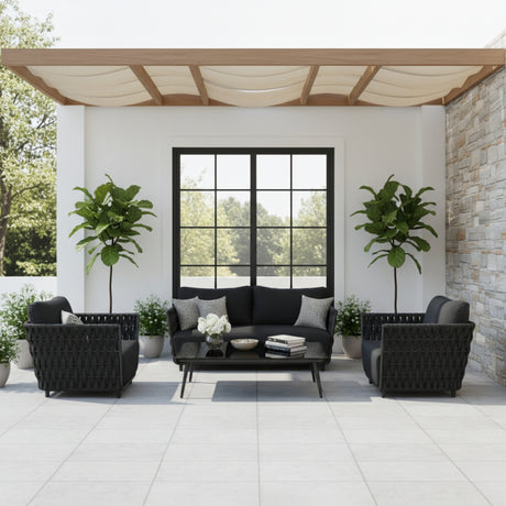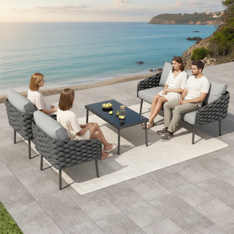 Outdoor 4 Piece Modern Woven Rope Sofa Set