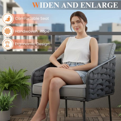 Outdoor 4-Seater Rope Conversation Set(Grey &am...