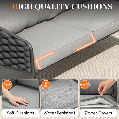 4-Piece Outdoor Rope Sofa Set (Grey)