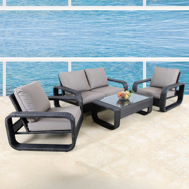 4-Piece Outdoor Rattan Wicker Patio Sofa Set & Glass Top Table