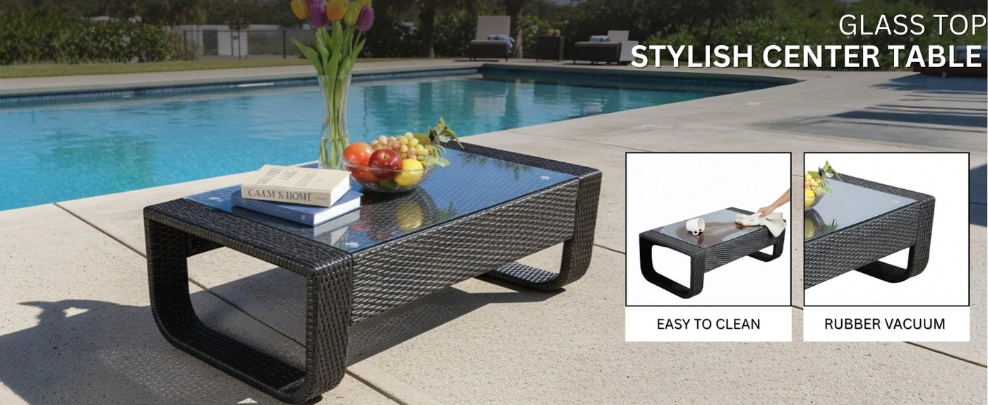 - Glass Coffee Table : Features a sleek, shatter-resistant glass tabletop that is both stylish and easy to maintain, offering a convenient surface for drinks, snacks, or décor.
