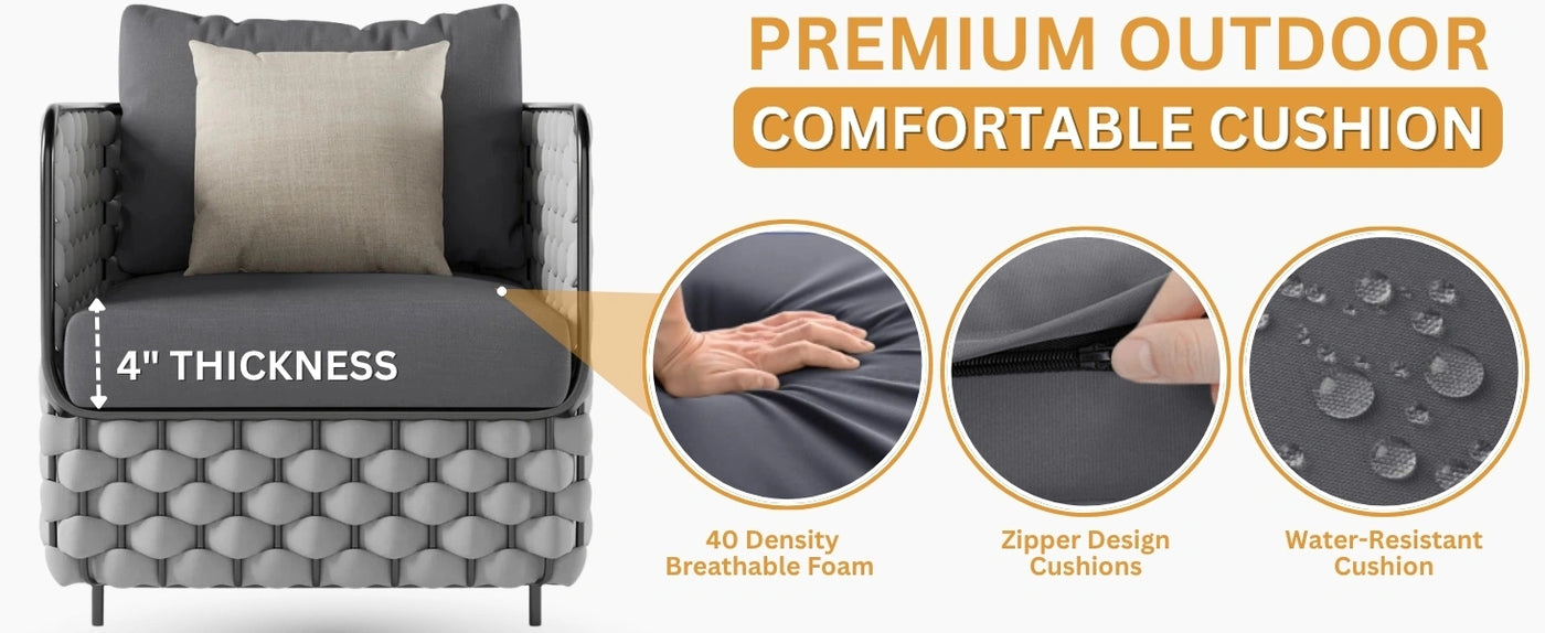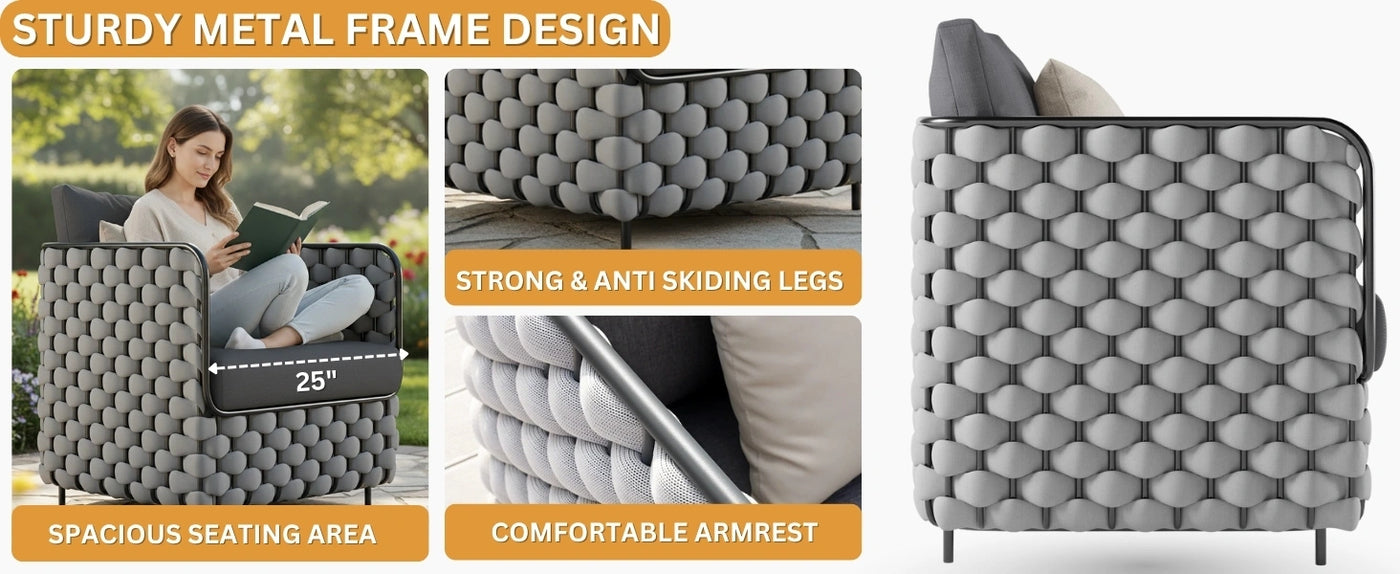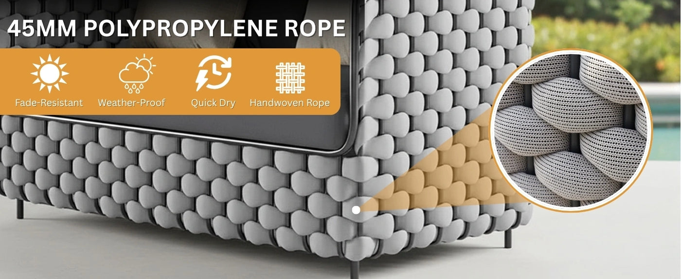• All-Weather Resistant Materials : Rope, frame, and cushions are designed to resist fading, UV damage, and moisture.