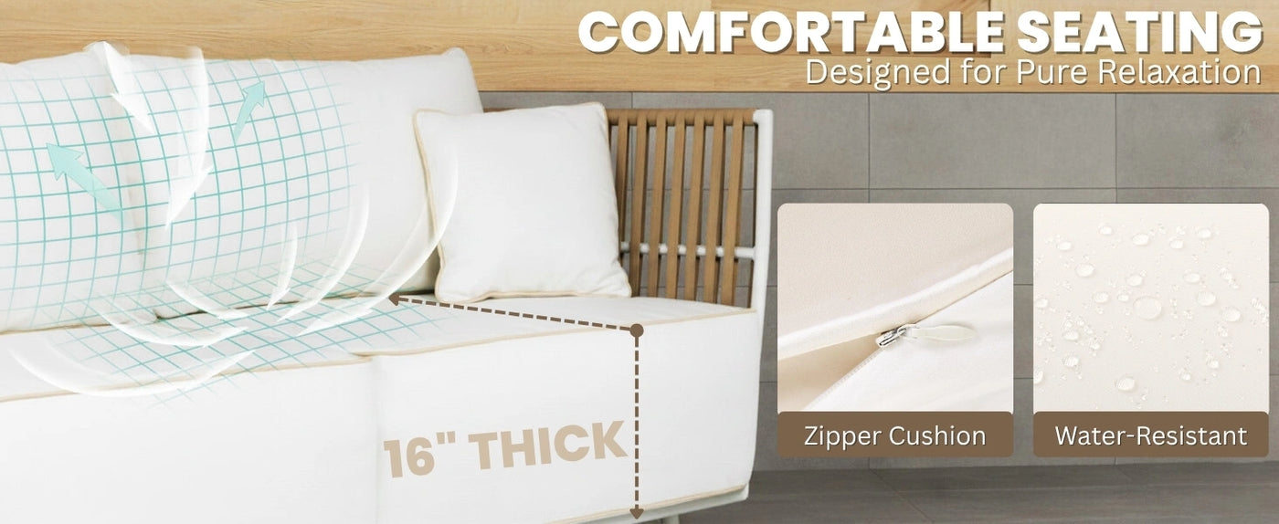 - 16-Inch Ultra-Thick Cushions : Extra-deep cushioning ensures unmatched comfort and relaxation for extended seating.