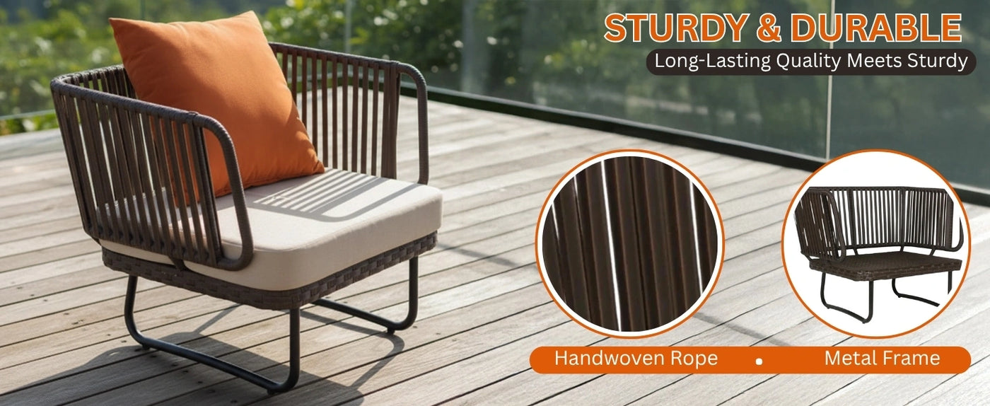 - Modern Coastal Design : Elegant brown rope weave and soft-toned cushions create a stylish, contemporary look for any outdoor setting.