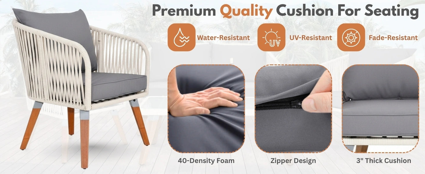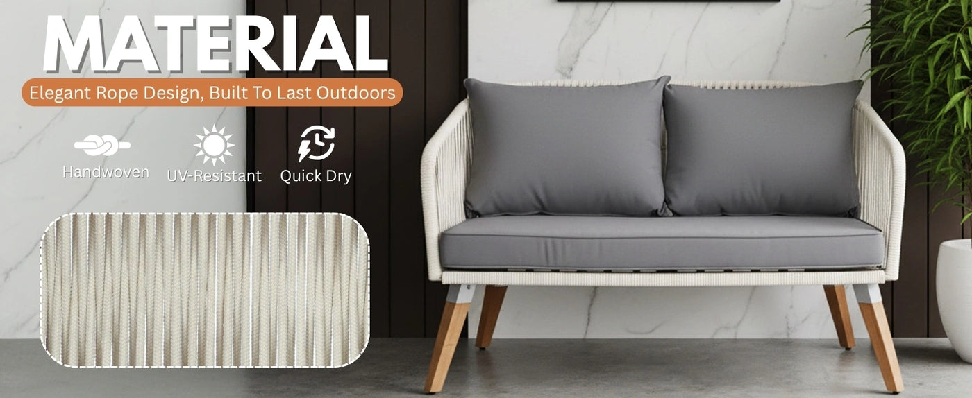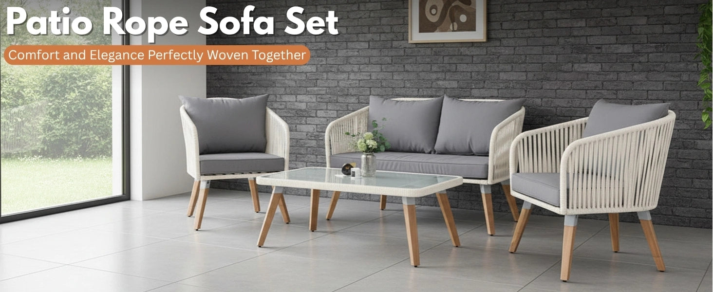 Outdoor Rope 4-Piece Sofa Set (White & Grey)
