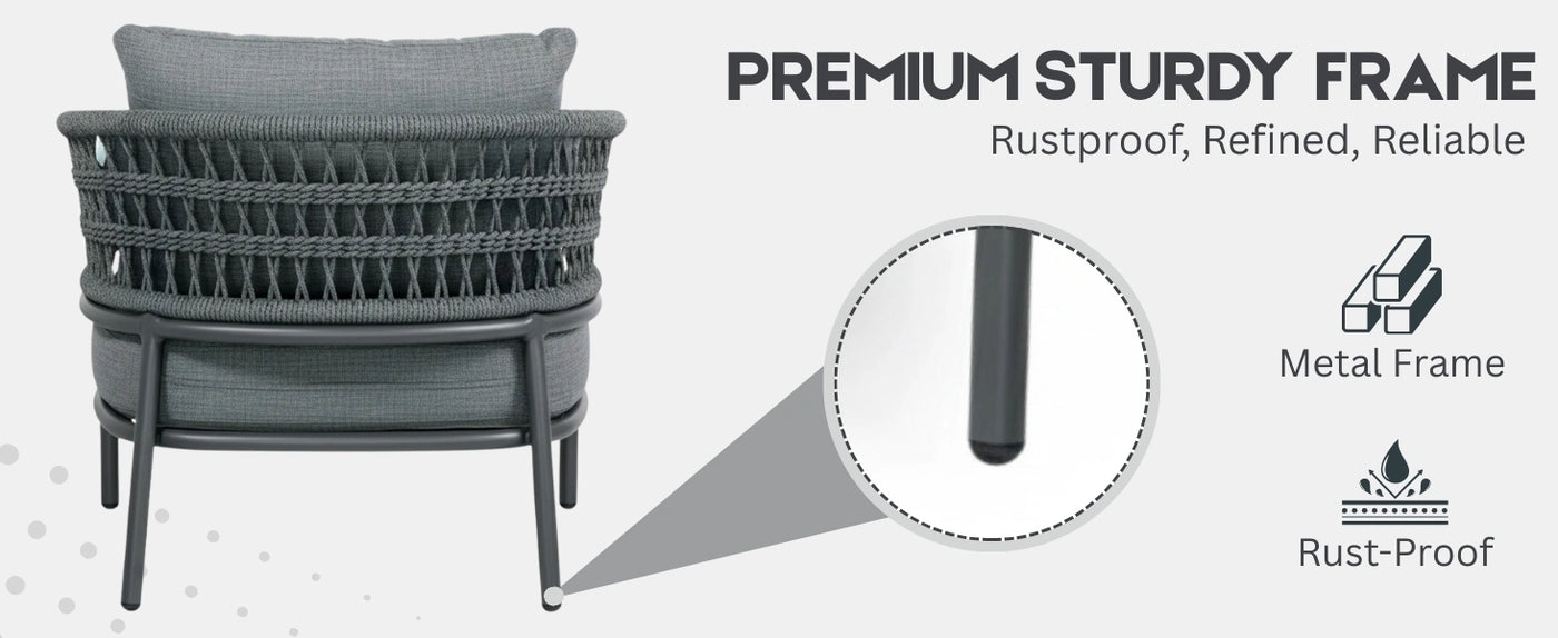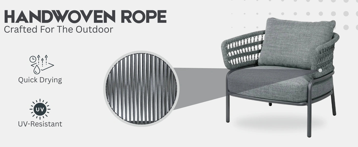 • Modern Coastal Design : Elegant grey rope weave and soft-toned cushions create a stylish, contemporary look for any outdoor setting.