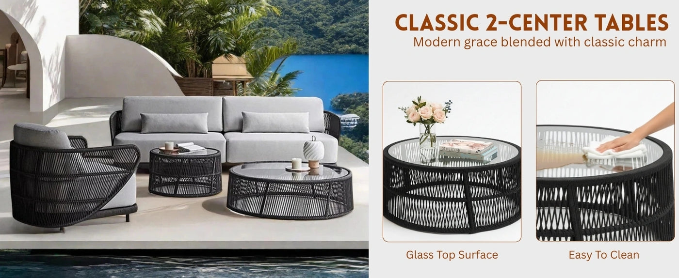 Outdoor Rope 4 Seater Sofa Set With Glass Top Tables