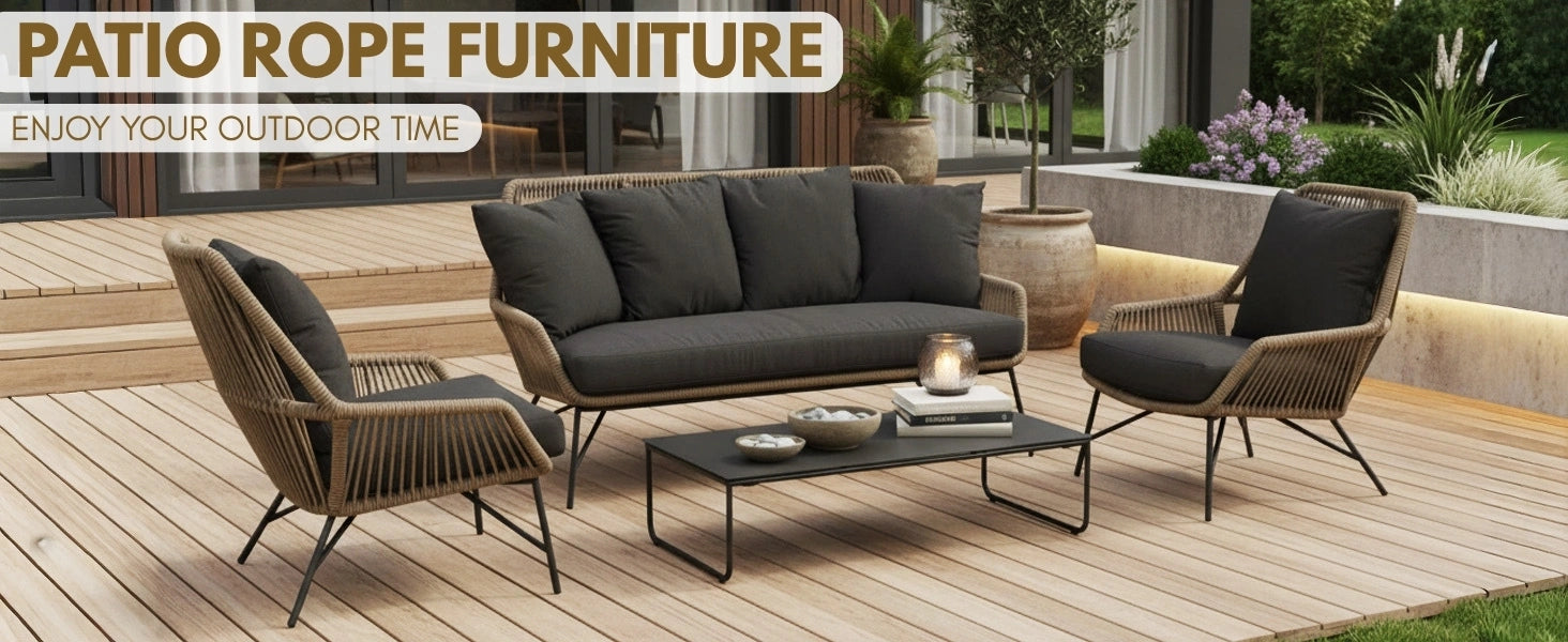 1. Rope Furniture - Clean with mild soap and water, avoid excess moisture, and cover when not in use to prevent wear from sun and rain.