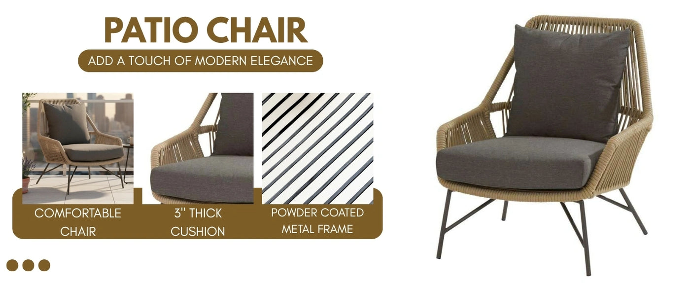 • Ergonomic Comfort & Aesthetic Appeal : Curved backrests and wide seats offer ergonomic support. Sleek design in neutral tones complements modern patios, terraces, or garden settings.