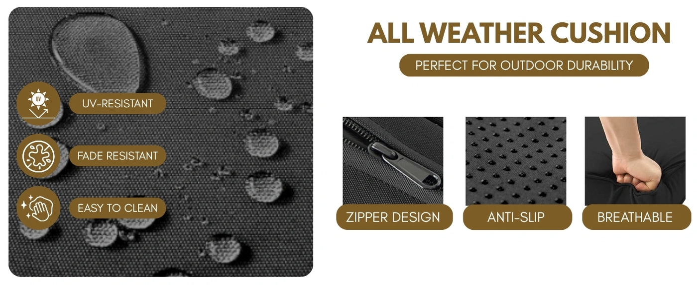 • Plush Cushions with Removable Covers : Thick seat and back cushions for superior comfort. Water-resistant, removable cushion covers for easy cleaning and maintenance.