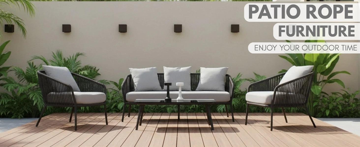 1. Rope Furniture - Clean with mild soap and water, avoid excess moisture, and cover when not in use to prevent wear from sun and rain.
