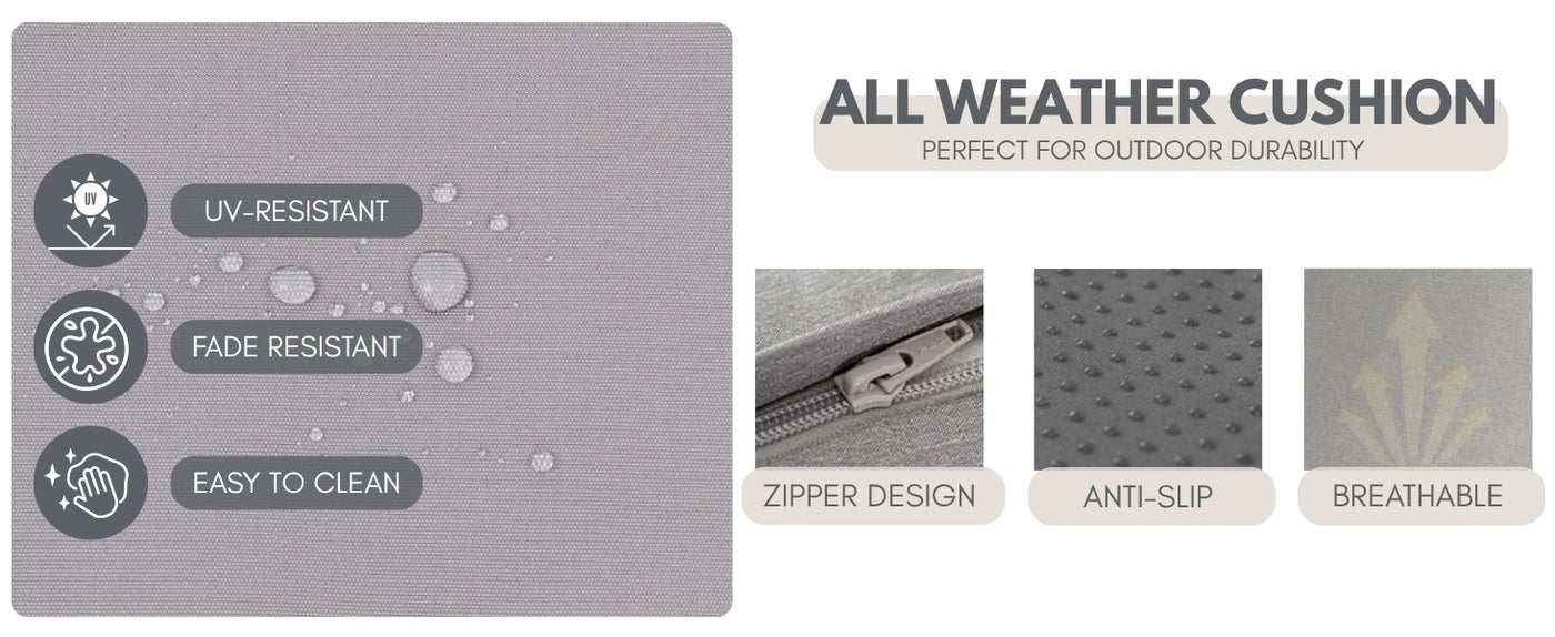 - Plush Cushions with Removable Covers : Thick seat and back cushions for superior comfort. Water-resistant, removable cushion covers for easy cleaning and maintenance.