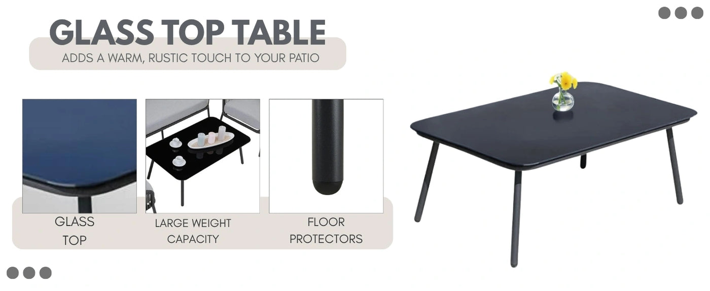 - Glass-Top Coffee Table : Glass top provides a stable, scratch-resistant surface. Easy to clean and ideal for serving drinks, snacks, or displaying decor.