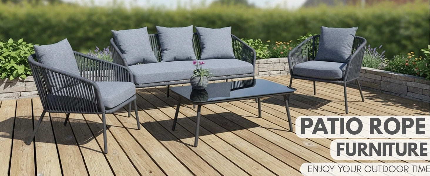 1. Rope Furniture - Clean with mild soap and water, avoid excess moisture, and cover when not in use to prevent wear from sun and rain.