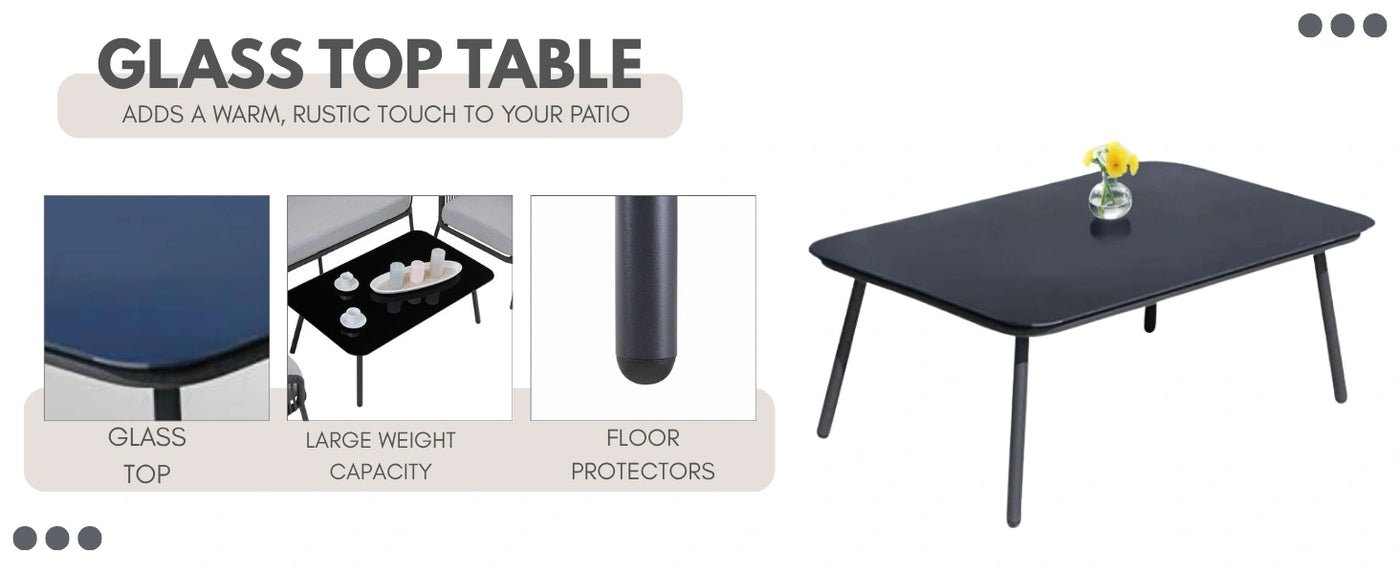 - Glass-Top Coffee Table : Glass top provides a stable, scratch-resistant surface. Easy to clean and ideal for serving drinks, snacks, or displaying decor.