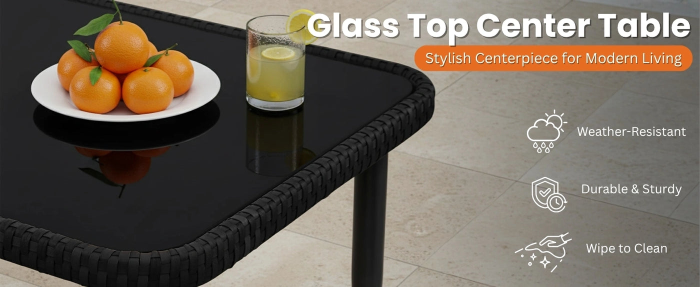• Elegant Glass Top Table : Sleek glass tabletop adds a warm, stylish touch and provides a stable surface for serving or décor.