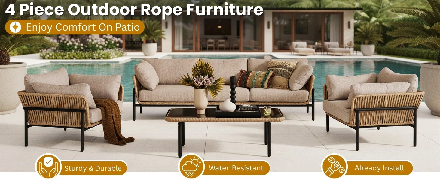 Outdoor 4-Piece Rope Conversation Sofa Set