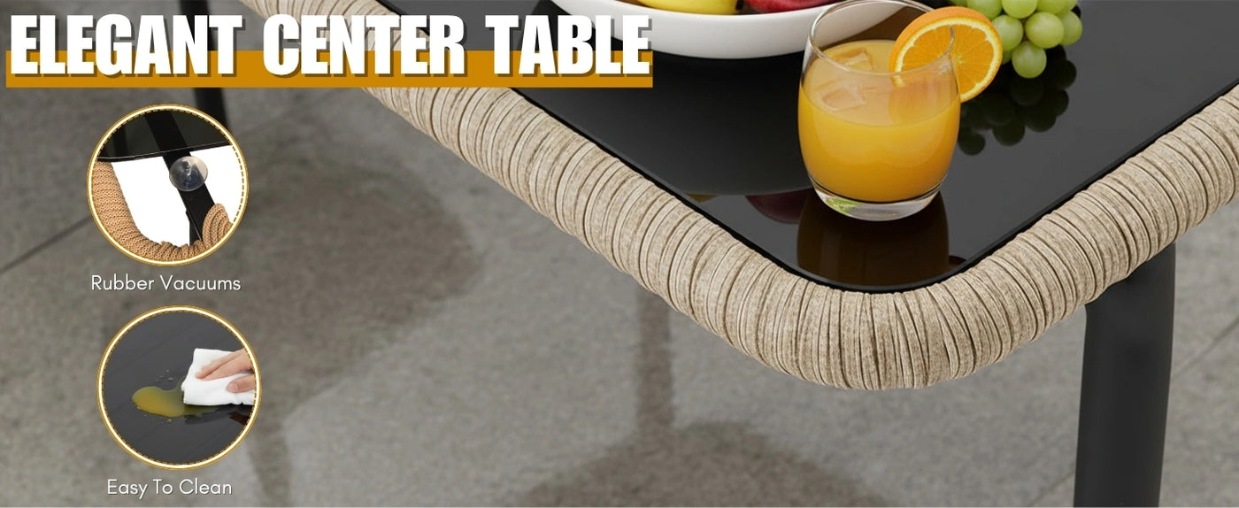 - Glass-Top Coffee Table : Glass top provides a stable, scratch-resistant surface. Easy to clean and ideal for serving drinks, snacks, or displaying decor.