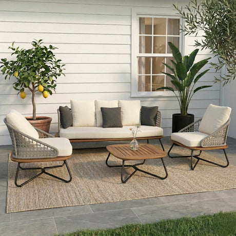 Outdoor 4-Piece Rope Conversation Sofa Set