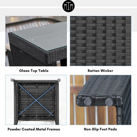 7-Piece Outdoor Rattan Wicker Bar Set with Glas...