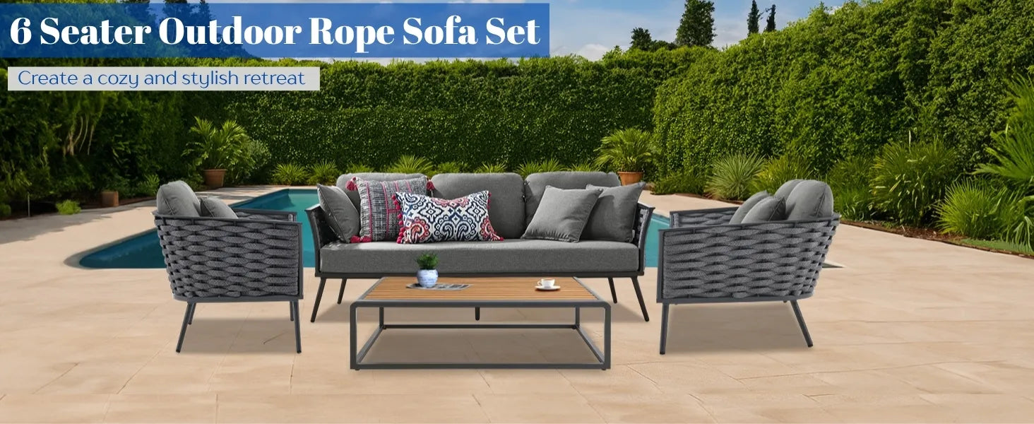 • Spacious 6-Seater Rope Sofa : Designed for generous seating, the modern rope-woven 6-seater sofa offers both style and space, making it ideal for gatherings with family or friends.