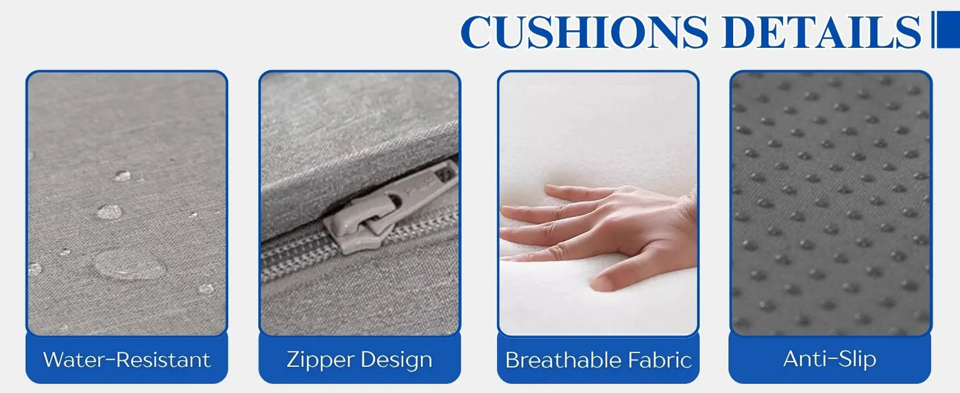 • Premium Washable Cushions : Extra-thick, high-density seat and back cushions with soft fabric covers offer superior lounging comfort. Water-resistant and removable covers make maintenance simple.