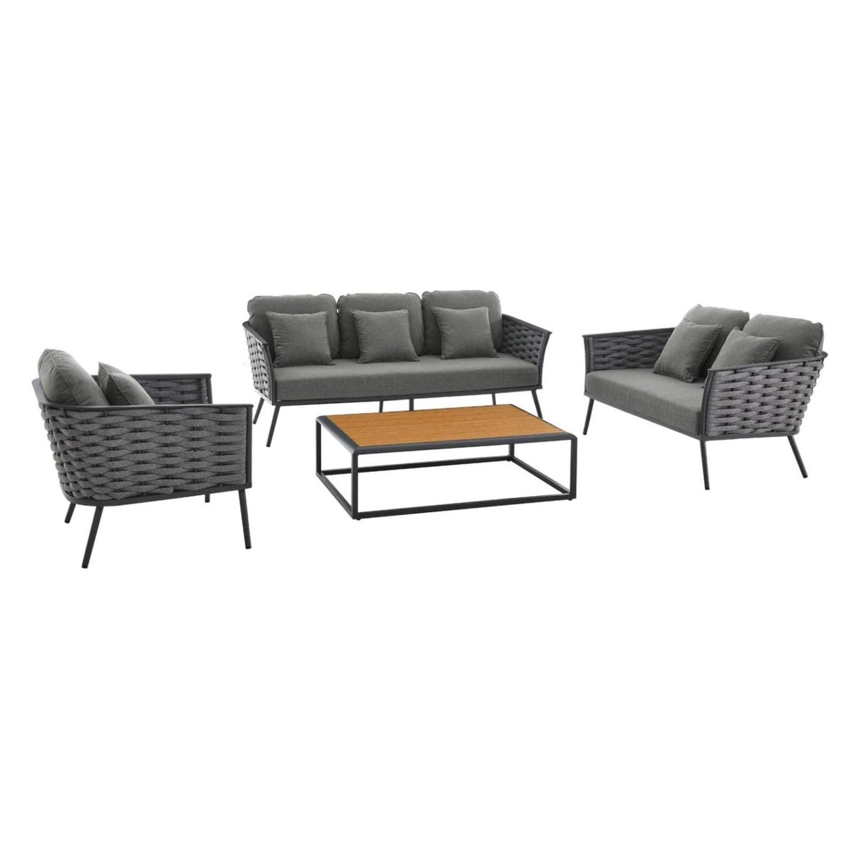 4 Piece Outdoor Rope Sofa Set with Wooden Top Table