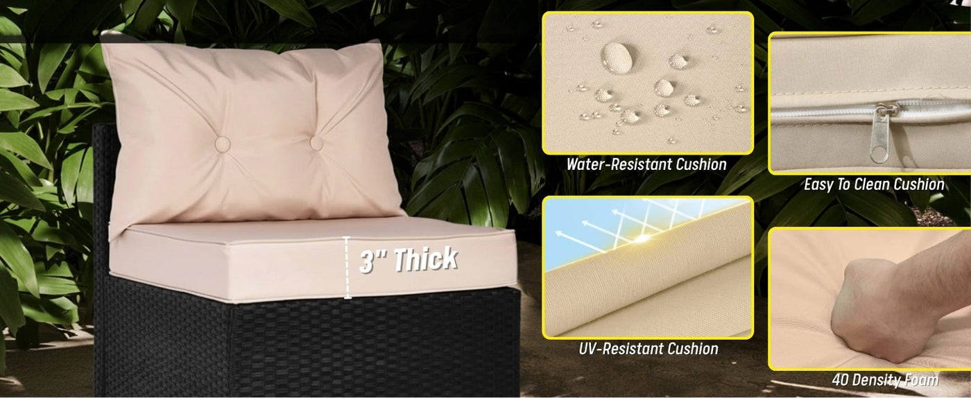 - All-Weather & UV-Resistant Materials : Built with a powder-coated metal frame and weather-resistant wicker, this set withstands sun, rain, and changing temperatures for year-round outdoor use.