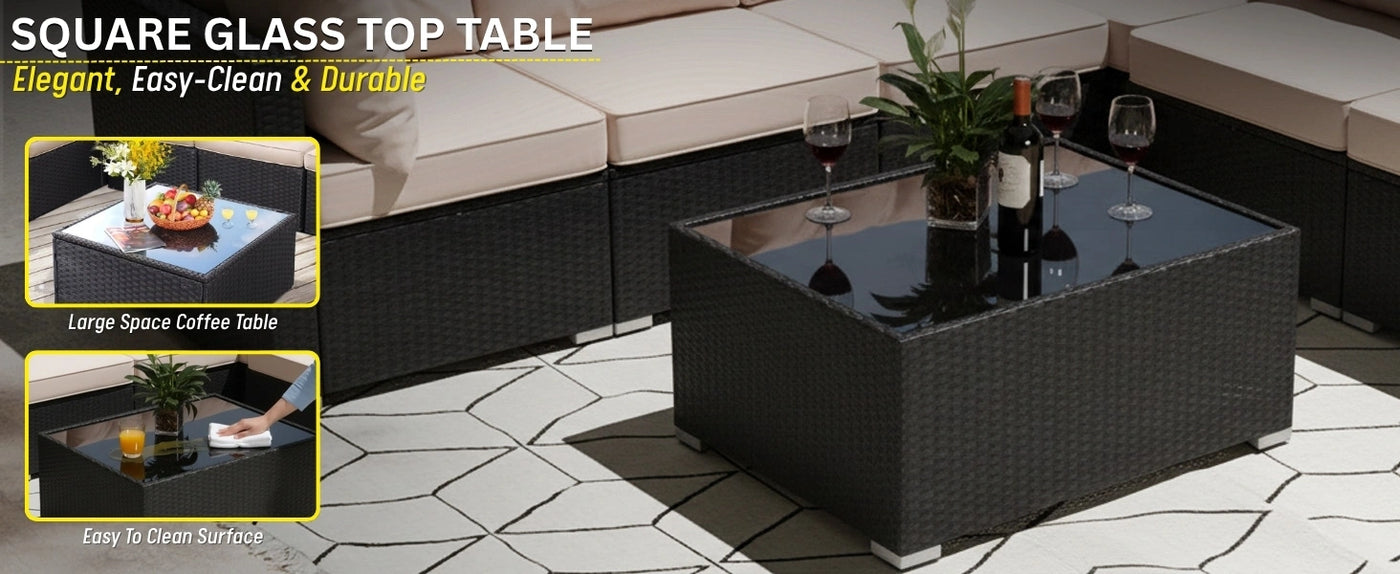 - Table Included : Comes with a matching center table with a glass top, providing a practical surface for drinks, snacks, or décor.