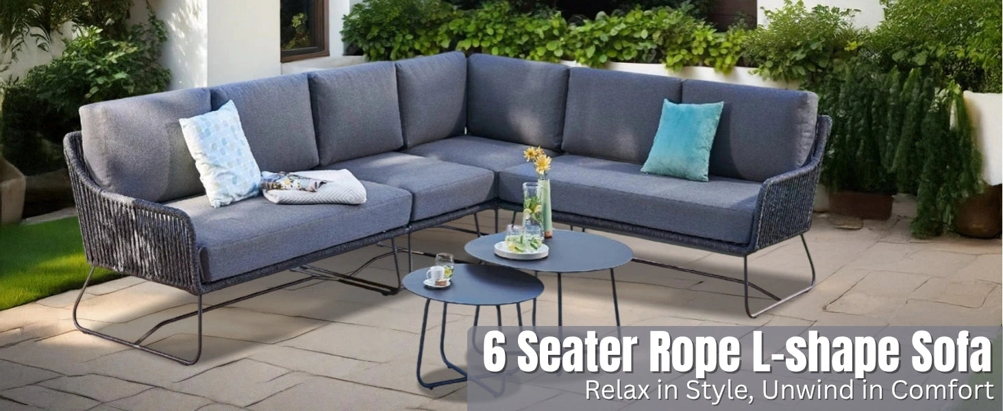 6-Seater L-Shape Outdoor Rope Sofa Set