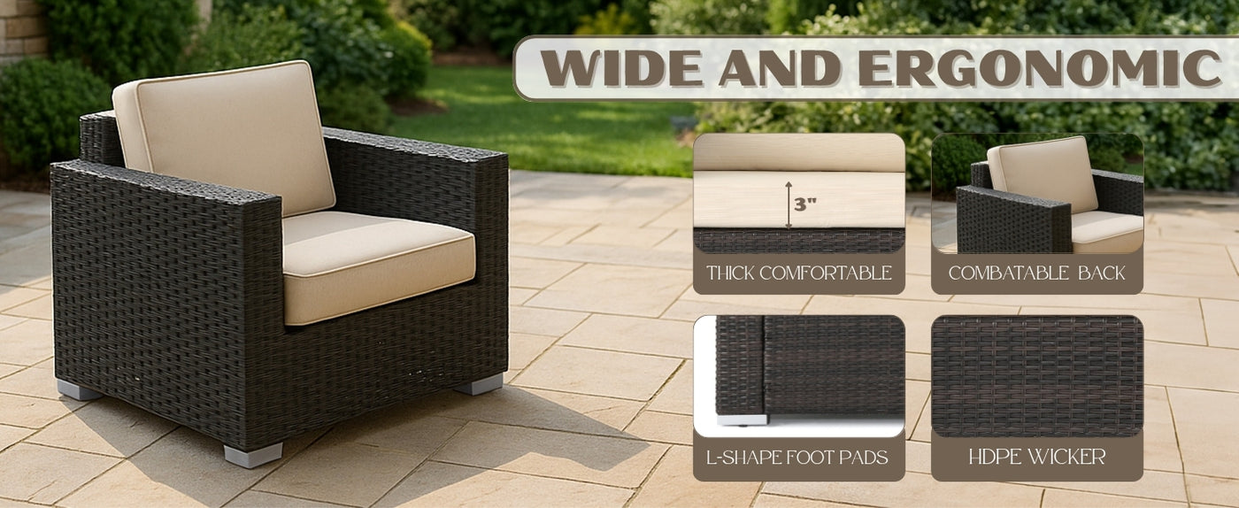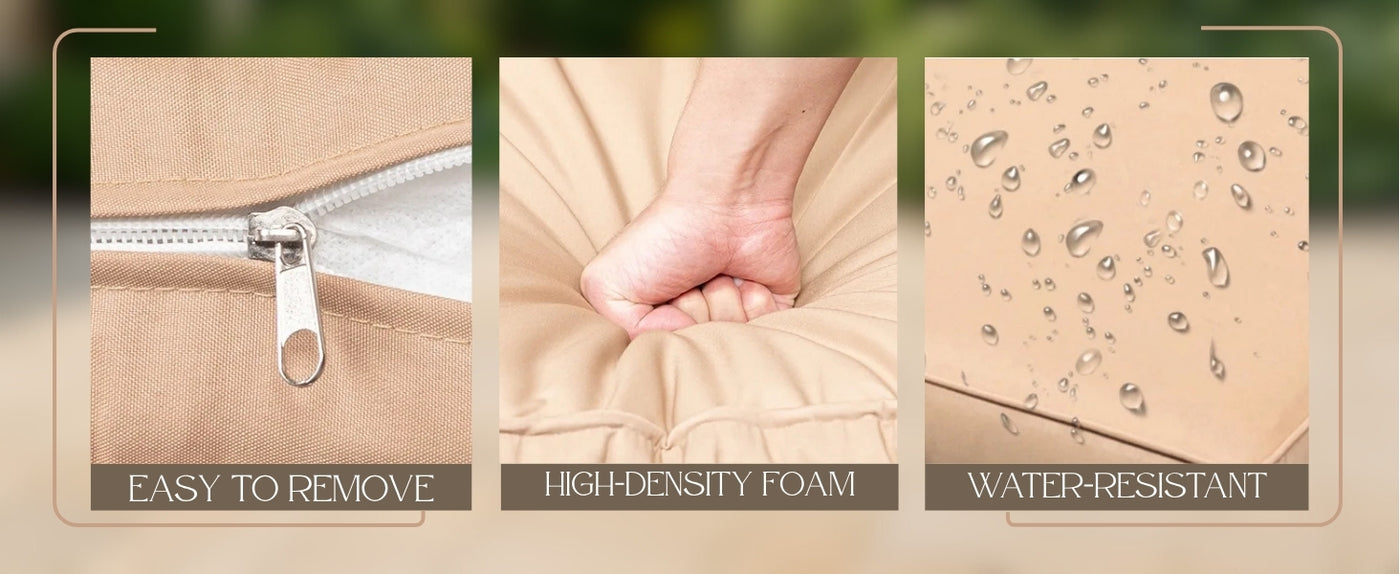- All-Weather Cushions Included : Water-resistant, fade-resistant cushions with thick padding ensure year-round comfort in any season.