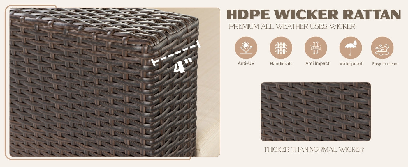- Durable HDPE Wicker Build : Crafted with premium handwoven HDPE wicker over a rust-resistant metal frame for long-lasting outdoor performance.