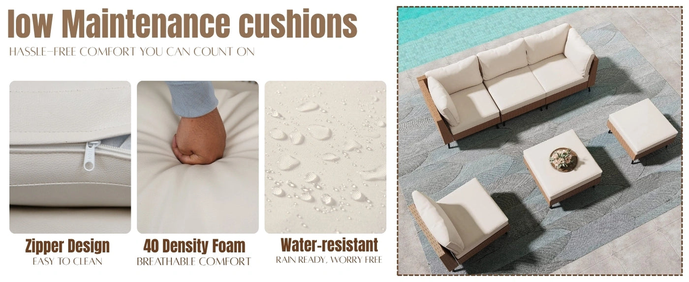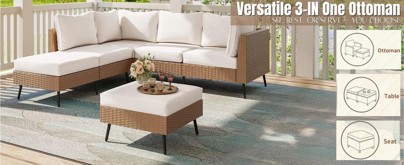Outdoor Rattan Wicker 6-Seater Sofa Set is backordered and will ship as soon as it is back in stock.