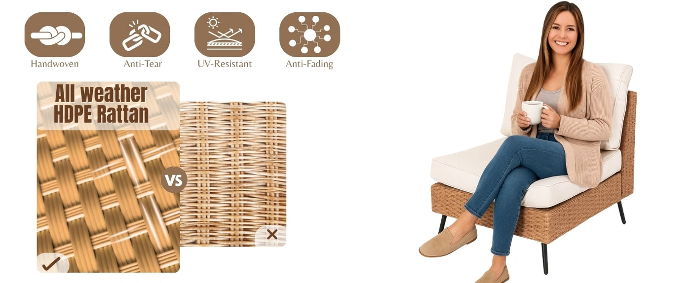 1. Rope Furniture - Clean with mild soap and water, avoid excess moisture, and cover when not in use to prevent wear from sun and rain.
