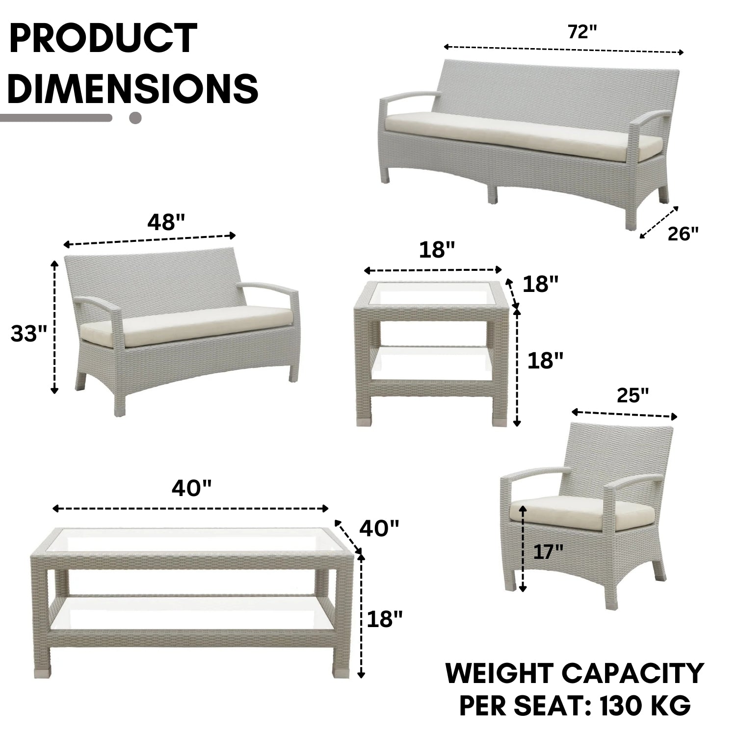Transform your outdoor living space into a luxurious retreat with this Outdoor 7-Seater Wicker Sectional Sofa Set. Crafted with precision and designed for comfort, this weather proof patio furniture set in an elegant wicker finish with cream cushions offers the perfect blend of style, durability, and versatility. Whether you're hosting a weekend garden party, enjoying evening tea on the balcony, or relaxing with your family indoors, this sofa set meets all your seating and lounging needs in one beautiful package. The plush, removable cushions are water-resistant and designed for maximum comfort, with soft padding and washable covers that make cleaning a breeze. The set also includes a 2-tier glass-top center table and matching side table, giving you ample space to serve snacks, drinks, or hold décor items. Whether placed outdoors on patios, terraces, balconies, or indoors in sunrooms or living areas, this versatile furniture set enhances any space with its modern aesthetic and functional design.