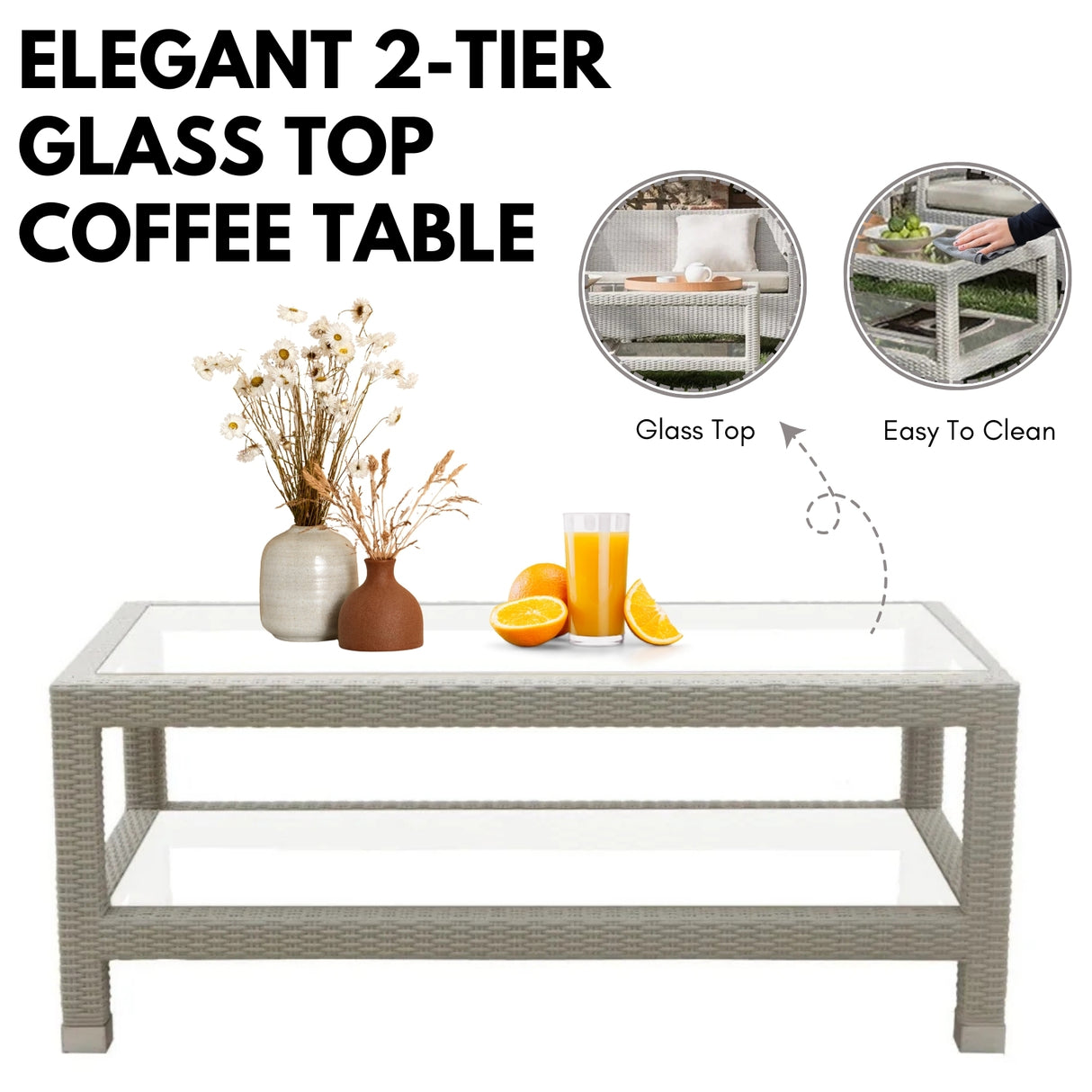 - Multi-Functional Center & Side Tables : Includes a stylish 2-tier glass-top center table and a convenient side table perfect for serving snacks, drinks, or decorative accents whether on a balcony, patio, or living room.